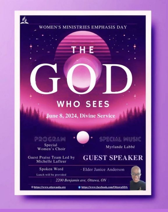 This Sabbath, June 8, 2024, is Women’s Ministries Emphasis Day. Held on the second Sabbath each June, the day is recognized by the Seventh-day Adventist World Church. This year’s theme is “God Who Sees.” Our prayer is that you will see how closely God watches over you, that you will pay attention to God at work in your life, and that you will keep your eyes focused on Him.