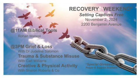 Join us this Sabbath, November 2 for Recovery Weekend presented by Health Ministries. Come for Sabbath School at 9:30 a.m. where we will study the Bible together, and Divine Service at 11:00 a.m. where Rohan Watson will present the sermon entitled “Biblical Tools for Healing.”