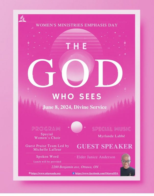 This Sabbath, June 8, is Women’s Ministries Emphasis Day. See the poster for details on what promises to be a Spirit-filled, uplifting and blessed day! Ladies, you don’t want to miss this. Invite your family, friends, and neighbours. Please help us celebrate by wearing purple on this day - women, children and men.